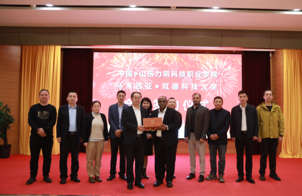 On October 15, 2023, against the backdrop of the joint launch of a series of key education cooperation projects between Shandong Province and Malaysia, a delegation from Twintech International University College of Technology, led by Vice Chancellor Prof. Dr. Selvaraj Oyyan Pillay, visited Shandong Liming Science and Technology College and formally signed a strategic cooperation agreement with the institution.