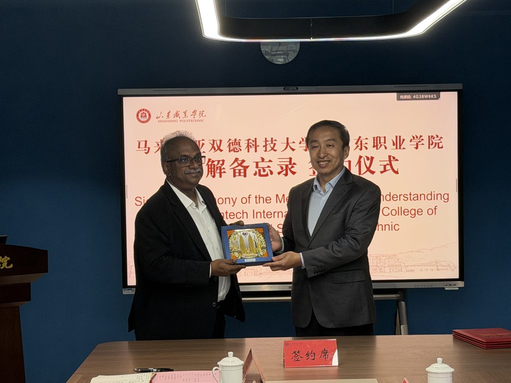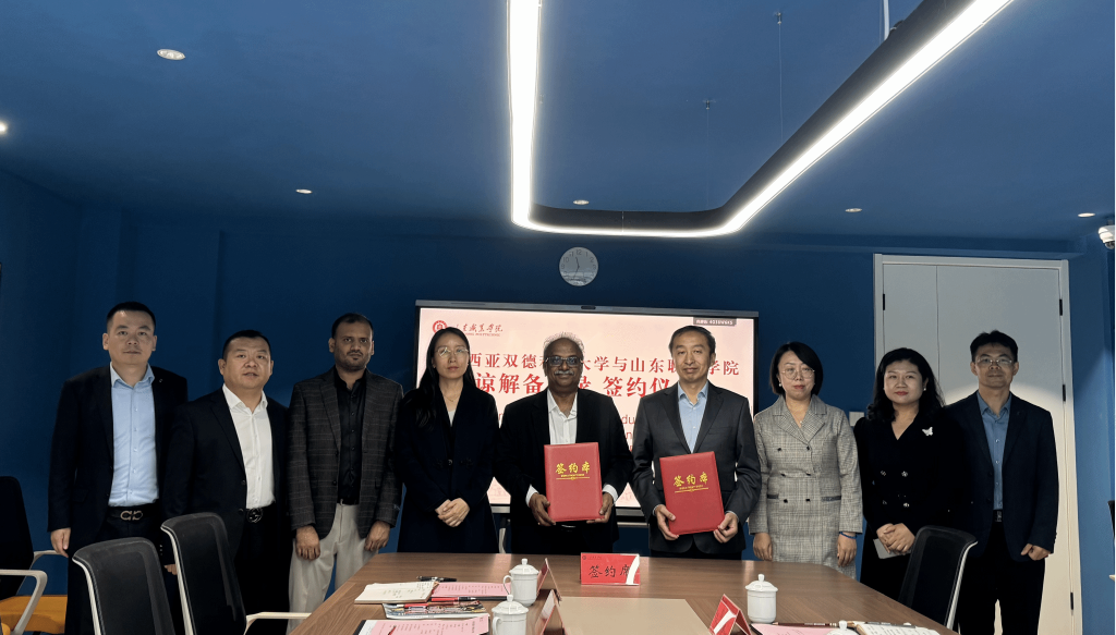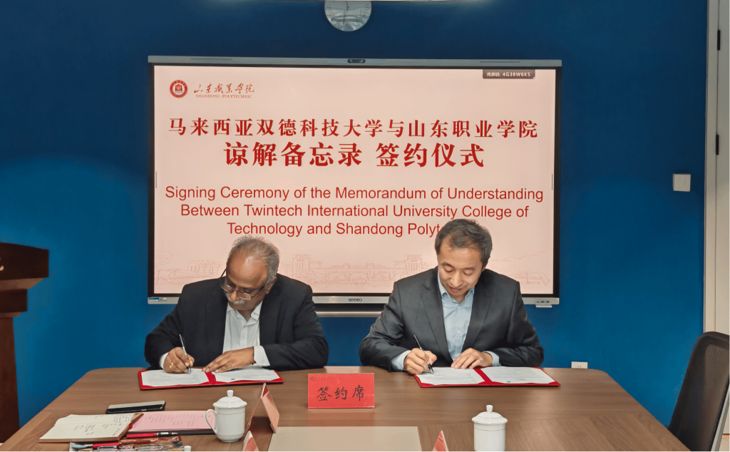 On October 16, 2023, Twintech International University College of Technology took a solid step forward in the field of international cooperation. A delegation led by Vice Chancellor Prof. Dr. Selvaraj Oyyan Pillay successfully visited Shandong Vocational College in China and formally signed a cooperation Memorandum of Understanding (MoU). This visit and the signing ceremony mark the official establishment of a strategic partnership between the two institutions, laying a solid foundation for future in-depth collaboration in various areas such as student and faculty exchanges and the joint development of training bases.